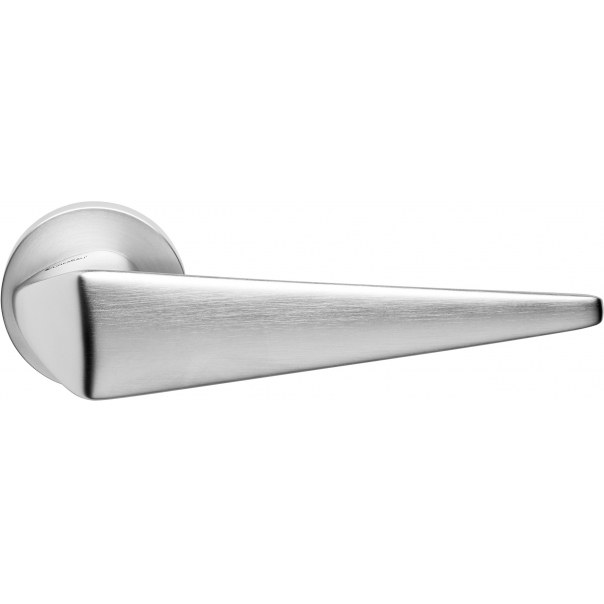 Klamka Komfort posiada okrągły szyld o średnicy Ø 52 mm. Została wykonana z mosiądzu i jest dostępna w wykończeniu chromowanym matowym.