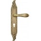 Ozdobna klamka do drzwi na długim szyldzie z otworem na wkładkę bębenkową. Wykonana z mosiądzu i dostępna w wykończeniu brązowionym matowym (jasnym).