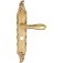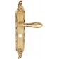 Ozdobna klamka do drzwi na długim szyldzie z blokadą WC. Odpowiednia do drzwi prawych. Wykonana z mosiądzu i dostępna w wykończeniu stare złoto (francuskie).