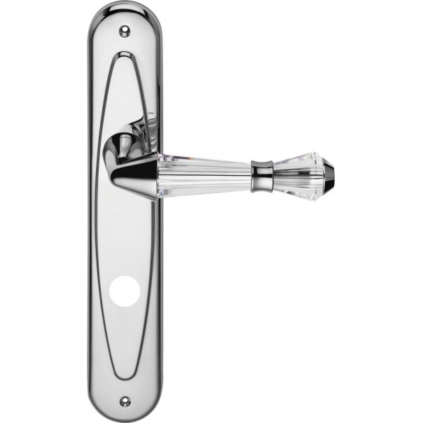Klamka do drzwi Luce posiada długi szyld z blokadą WC. Została wykonana z mosiądzu i jest dostępna w wykończeniu chromowanym.