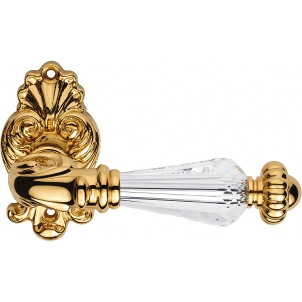 Mosiężna klamka dekoracyjna z kryształem Swarovskiego. Charakteryzuje się najwyższą jakością wykonania oraz posiada szeroki wybór dostępnych wykończeń.