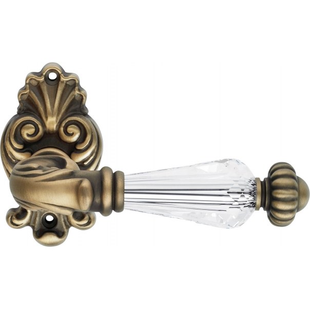 Klamka do drzwi Ninfa Crystal została wykonana z mosiądzu i jest dostępna w wykończeniu brązowionym matowym (jasnym).
