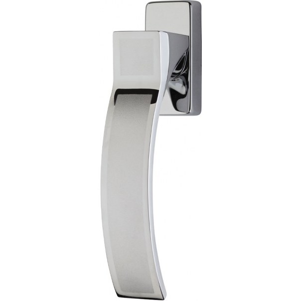 Klamka okienna na prostokątnym szyldzie o wymiarach 30x64 mm. Montowana na śruby i wkręty. Wykonana z mosiądzu i dostępna w wykończeniu chromowanym i chromowanym piaskowanym.