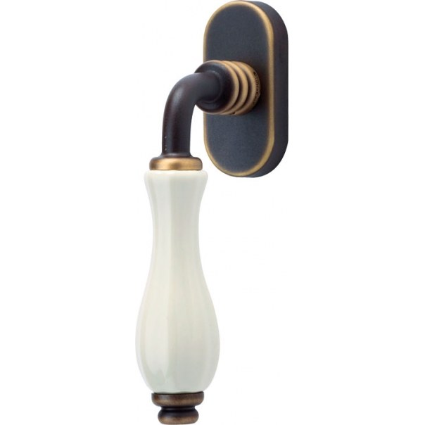 Klamka okienna Erica Porcellana Bianca jest wykonana z mosiądzu i występuje w wykończeniu brązowionym matowym (ciemnym).