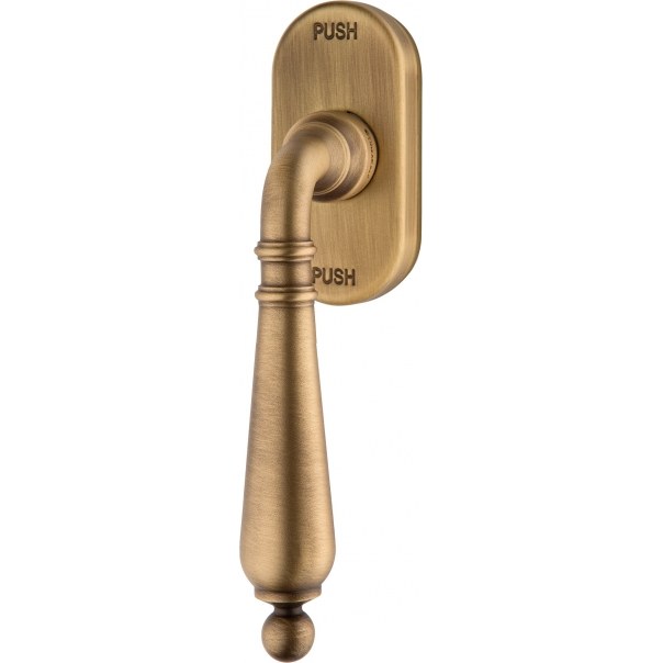 Solidna mosiężna klamka okienna, której stylistyka nawiązuje do architektury tradycyjnych toskańskich rezydencji, wilii, a nawet pałaców. Idealnie komponuje się wnętrzami, urządzonymi w stylu vintage. Ponadto znakomicie podkreśla charakter każdych drewnianych okien i drzwi balkonowych, zarówno tych o minimalistycznym designie, jak i posiadających bogato zdobione skrzydła.
