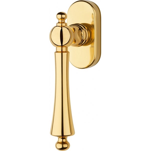 Dekoracyjna klamka z mosiądzu zaprojektowana w uniwersalnym, a zarazem ponadczasowym klasycznym stylu, który cieszył się bardzo dużą popularnością w ubiegłym wieku. Wyróżnia się wysokiej jakości wykonaniem i wykończeniem. Znakomicie sprawdza się we wszystkich gustownie zaaranżowanych wnętrzach, wyposażonych w antyki i drewniane meble. Prezentowany model jest dedykowany do zastosowania w oknach oraz w drzwiach balkonowych.
