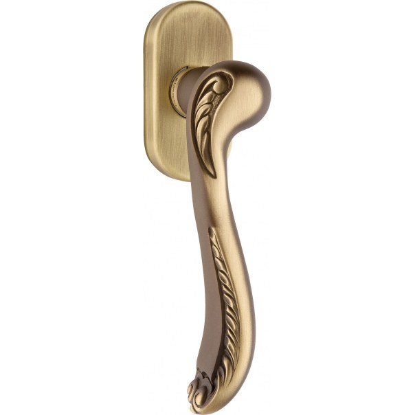 Prezentowana klamka okienna występuje w wykończeniu brązowionym matowym (jasnym).
