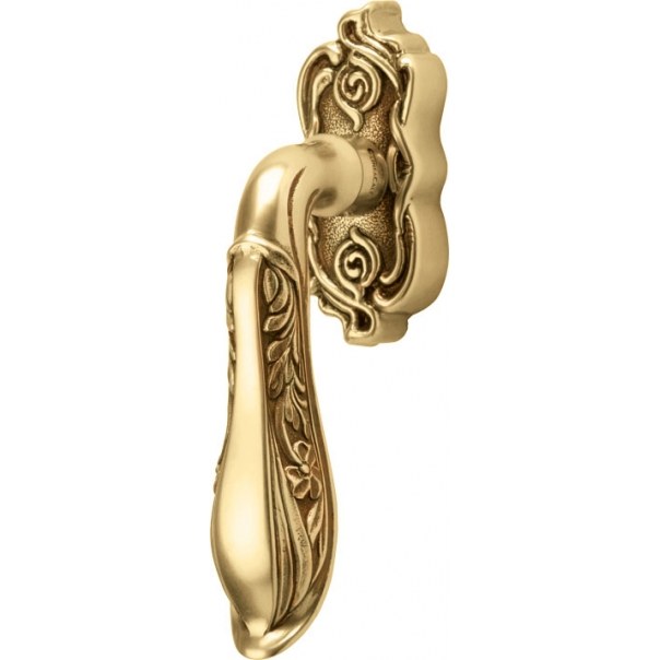 Elegancka klamka okienna odpowiednia także do drzwi balkonowych i drzwi tarasowych. Wykonana z mosiądzu i dostępna w wykończeniu brązowionym matowym (jasnym).