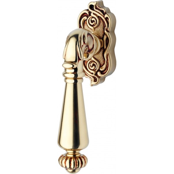 Klamka okienna Ninfa została wykonana z mosiądzu i jest dostępna w wykończeniu stare złoto (francuskie).