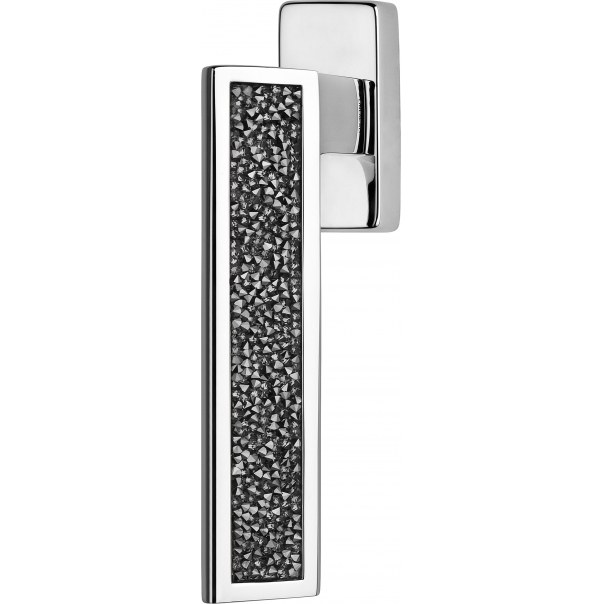Nowoczesna, futurystyczna i bardzo wygodna klamka do okien i drzwi balkonowych. Wyposażona w szeroką płaską rękojeść, ozdobioną mieniącymi się kryształami Swarovski, które zapewniają interesujący efekt stylistyczny wynikający z gry barw i odbijającego się światła. Stanowi niezwykle elegancki dodatek do okien i drzwi balkonowych w domach, mieszkaniach oraz w obiektach użyteczności publicznej.