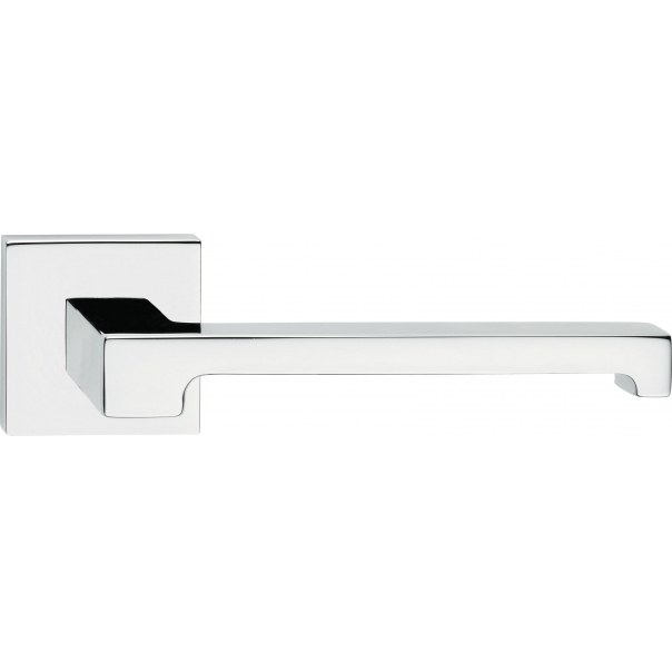 Mosiężna klamka Open posiada kwadratowy szyld o wymiarach 50x50 mm i występuje w wykończeniu chromowanym.