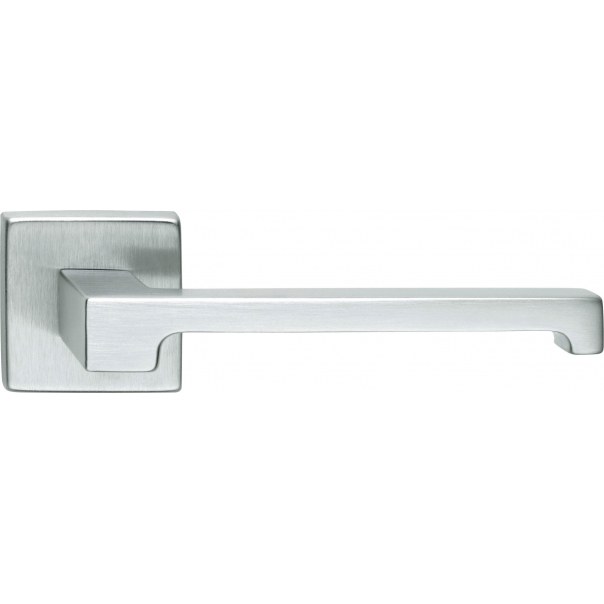Mosiężna klamka Open posiada kwadratowy szyld o wymiarach 50x50 mm i występuje w wykończeniu chromowanym matowym.