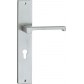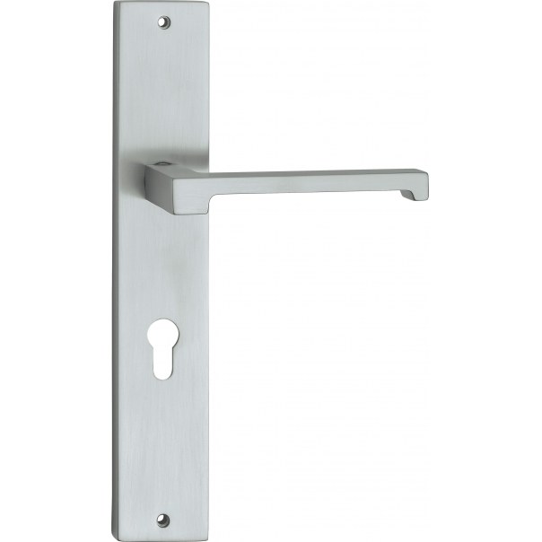 Prezentowany model klamki posiada długi szyld z otworem na wkładkę bębenkową i występuje w wykończeniu chromowanym matowym.