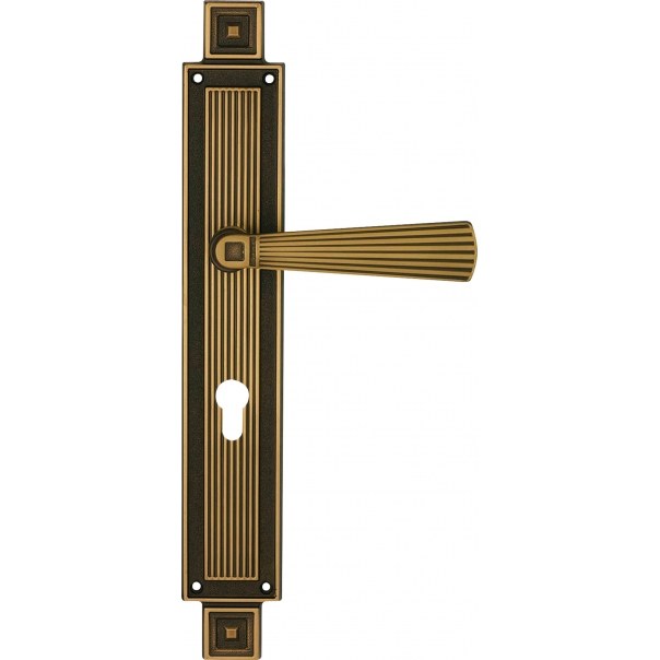 Klamka Opera na długim szyldzie z otworem na wkładkę bębenkową, dedykowana do drzwi w domach, mieszkaniach i obiektach użyteczności publicznej. Łączy w sobie elementy stylu neoklasycznego z wysokiej jakości wykończeniem i dbałością o najdrobniejsze detale. Dzięki temu przypadnie do gustu wszystkim osobom ceniącym sobie solidne wykonanie oraz eleganckie i ponadczasowe wzornictwo, w którym dominują długie, proste linie. Prezentowany model jest dostępny w wykończeniu brązowionym matowym (ciemnym).