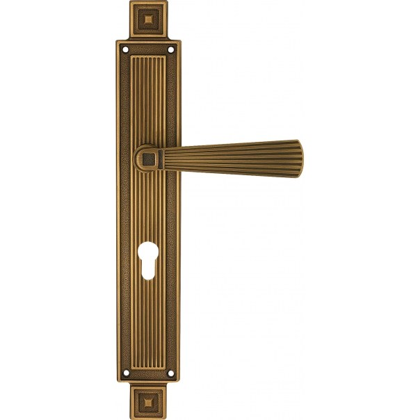 Klamka Opera na długim szyldzie z otworem na wkładkę bębenkową, dedykowana do drzwi w domach, mieszkaniach i obiektach użyteczności publicznej. Łączy w sobie elementy stylu neoklasycznego z wysokiej jakości wykończeniem i dbałością o najdrobniejsze detale. Dzięki temu przypadnie do gustu wszystkim osobom ceniącym sobie solidne wykonanie oraz eleganckie i ponadczasowe wzornictwo, w którym dominują długie, proste linie. Prezentowany model jest dostępny w wykończeniu brązowionym matowym (ciemnym) i przecieranym lakierowanym.
