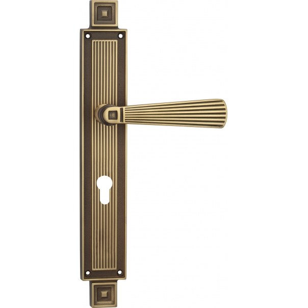 Klamka Opera na długim szyldzie z otworem na wkładkę bębenkową, dedykowana do drzwi w domach, mieszkaniach i obiektach użyteczności publicznej. Łączy w sobie elementy stylu neoklasycznego z wysokiej jakości wykończeniem i dbałością o najdrobniejsze detale. Dzięki temu przypadnie do gustu wszystkim osobom ceniącym sobie solidne wykonanie oraz eleganckie i ponadczasowe wzornictwo, w którym dominują długie, proste linie. Prezentowany model jest dostępny w wykończeniu brązowionym matowym (jasnym).