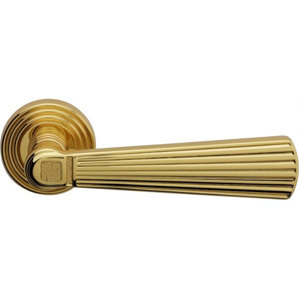Klamka Opera na okrągłym szyldzie, dedykowana do drzwi w domach, mieszkaniach i obiektach użyteczności publicznej. Łączy w sobie elementy stylu neoklasycznego z wysokiej jakości wykończeniem i dbałością o najdrobniejsze detale. Dzięki temu przypadnie do gustu wszystkim osobom ceniącym sobie solidne wykonanie oraz eleganckie i ponadczasowe wzornictwo, w którym dominują długie, proste linie. Prezentowany model jest dostępny w wykończeniu pozłacanym.