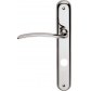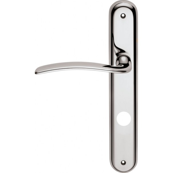 Klamka do drzwi Piuma została wykonana z mosiądzu. Posiada długi szyld o wymiarach 40x245 mm z otworem na blokadę WC i występuje w wykończeniu chromowanym matowym.