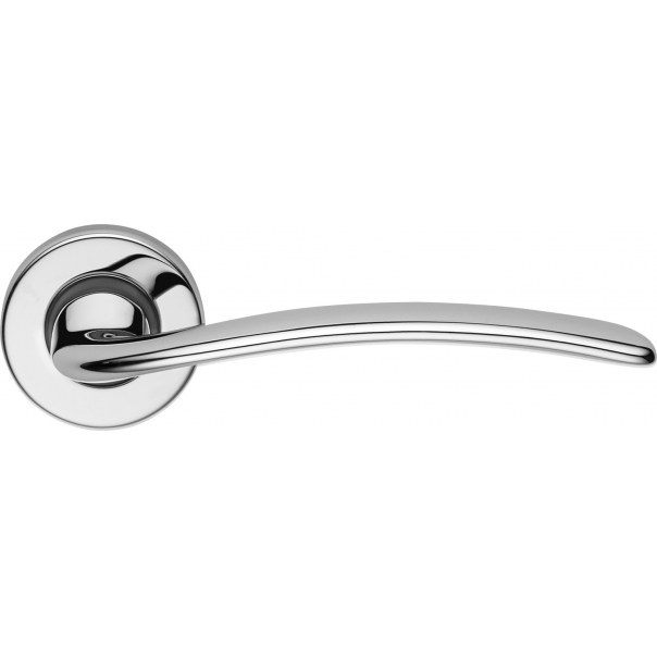 Klamka do drzwi Piuma została wykonana z mosiądzu. Posiada okrągły szyld o średnicy Ø45 mm i występuje w wykończeniu chromowanym.