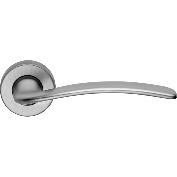 Klamka do drzwi Piuma została wykonana z mosiądzu. Posiada okrągły szyld o średnicy Ø45 mm i występuje w wykończeniu chromowanym matowym.