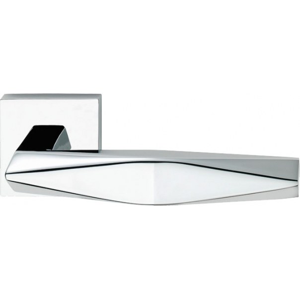 Klamka do drzwi Prisma jest wykonana z mosiądzu i posiada kwadratowy szyld o wymiarach 50x50 mm. Występuje w wykończeniu chromowanym.