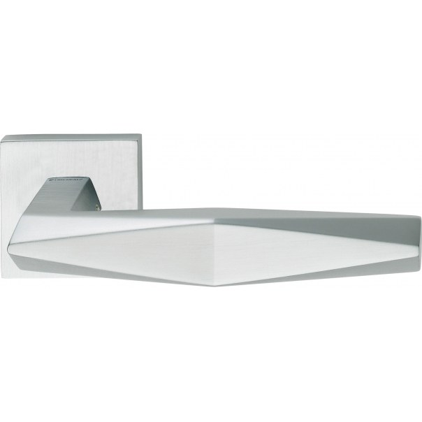 Klamka do drzwi Prisma jest wykonana z mosiądzu i posiada kwadratowy szyld o wymiarach 50x50 mm. Występuje w wykończeniu chromowanym matowym.