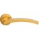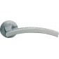 Ozdobna klamka na okrągłym szyldzie o średnicy Ø 50 mm. Wykonana z mosiądzu i dostępna w wykończeniu chromowanym matowym. Wyposażona w sprężynę powrotną oraz trzpień ⧄ 8 mm. Montowana na śruby i wkręty.