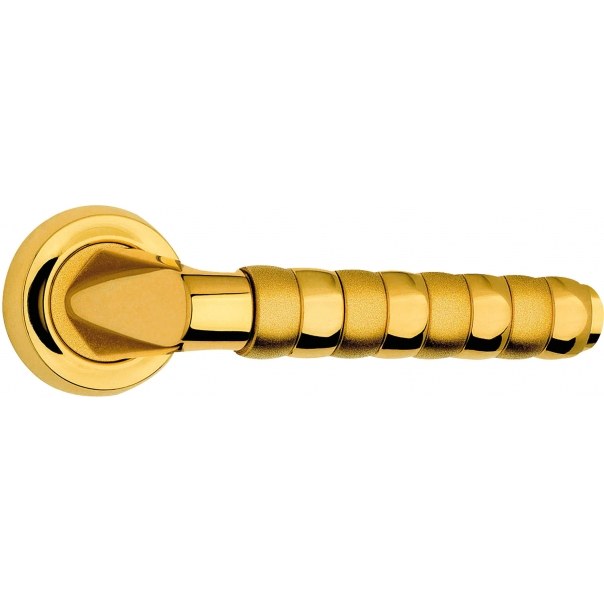 Klamka do drzwi charakteryzująca się minimalistycznym stylem. Na jej rękojeści znajdują się wypukłe elementy przypominające kształtem pierścienie. Dzięki nim rękojeść klamki bardzo wygodnie leży w dłoni.