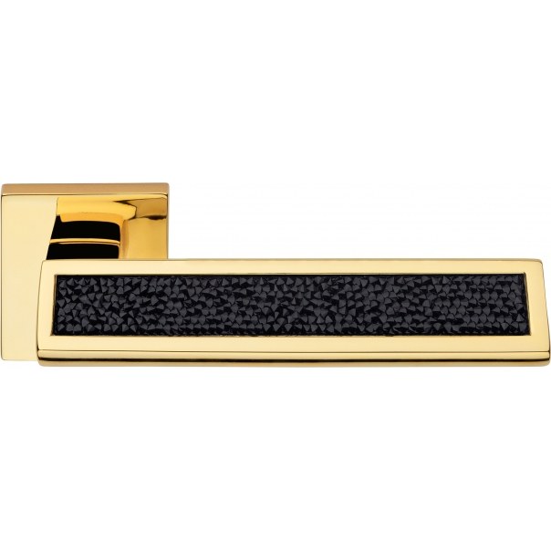 Nowoczesna, futurystyczna i bardzo wygodna klamka. Wyposażona w szeroką płaską rękojeść, ozdobioną mieniącymi się kryształami Swarovski, które zapewniają interesujący efekt stylistyczny wynikający z gry barw i odbijającego się światła. Stanowi niezwykle elegancki dodatek do wszystkich w drzwi w domach, mieszkaniach oraz w obiektach użyteczności publicznej.