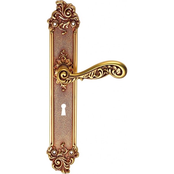Prezentowany model posiada długi szyld z otworem na klucz i występuje w wykończeniu stare złoto (francuskie).