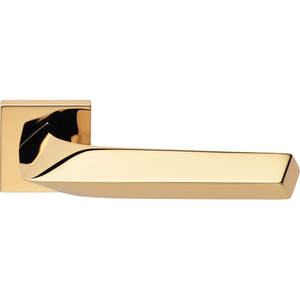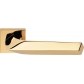 Klamka drzwiowa Rombo posiada kwadratowy szyld o wymiarach 50x50 mm. Została wykonana z mosiądzu i jest dostępna w wykończeniu pozłacanym.