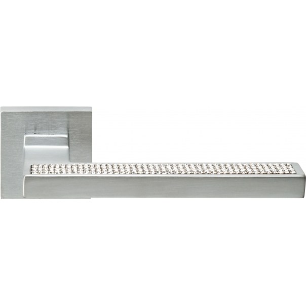 Sintesi Mesh to nowoczesny model klamki do drzwi, zaprojektowanej w minimalistycznym stylu i ozdobionej eleganckimi kryształami Swarovski. Posiada ona kwadratowy szyld o wymiarach 50x50 mm. Proste kształty rękojeści sprawiają, że klamka ma uniwersalne zastosowanie oraz doskonale komponuje się z nowoczesnymi wnętrzami zarówno w domach, mieszkaniach prywatnych, jak i w obiektach użyteczności publicznej.