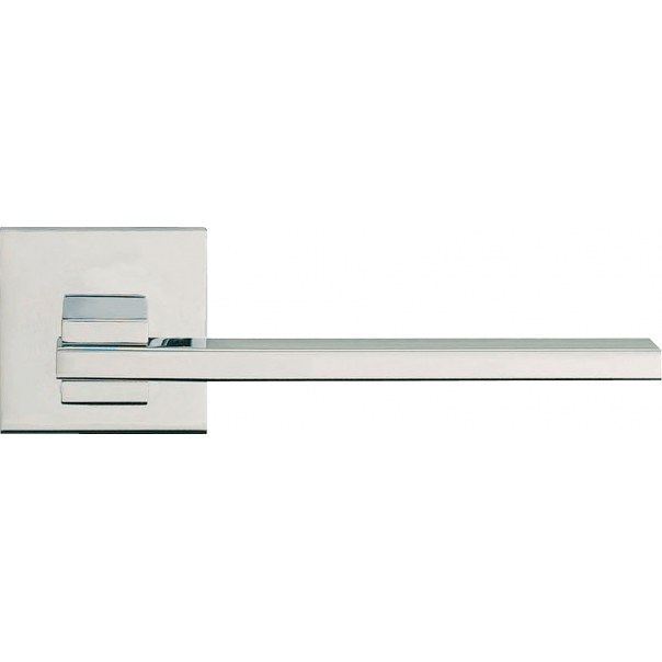 Klamka drzwiowa na szyldzie kwadratowym o wymiarach 50x50 mm. Zaprojektowana w stylu, odpowiadającym aktualnie obowiązującym trendom. Nadaje się idealnie zarówno do domów i mieszkań, jak i do wnętrz znajdujących się w popularnych obiektach użyteczności publicznej. Klamka jest dostępna w wykończeniu chromowanym (CR).