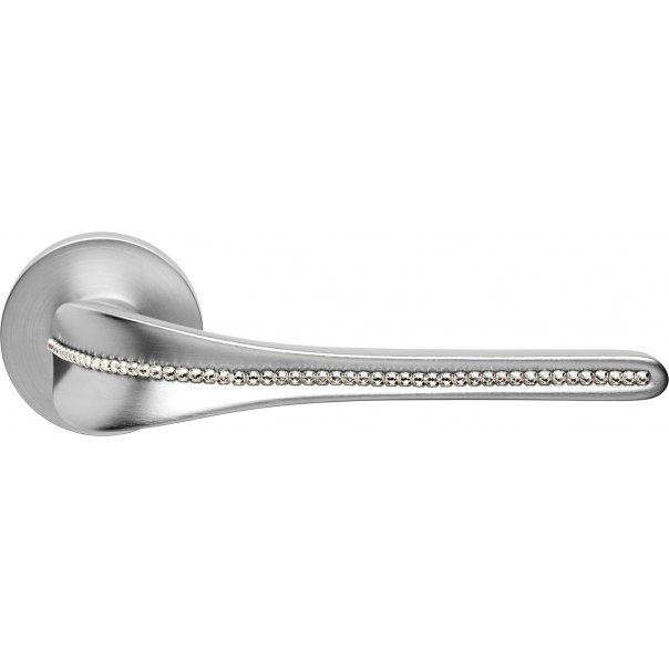 Nowoczesna i elegancka klamka drzwiowa z rękojeścią ozdobioną mieniącymi się feerią barw kryształami Swarovski.