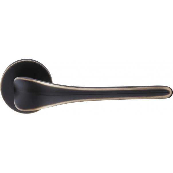 Klamka Spirit posiada okrągły szyld o średnicy Ø 52 mm. Została wykonana z mosiądzu i jest dostępna w wykończeniu brązowionym matowym (ciemnym).
