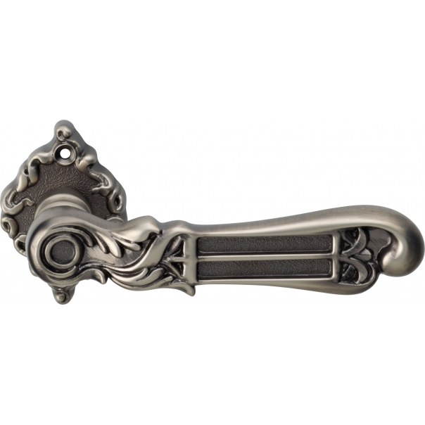 Prezentowana klamka jest wykonana z mosiądzu i występuje w wykończeniu stare srebro.