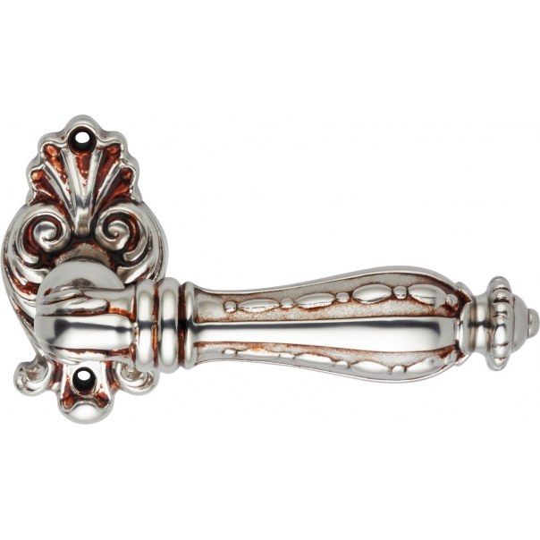 Klamka do drzwi Zaara została wykonana z mosiądzu i jest dostępna w wykończeniu stare srebro + czerwony.