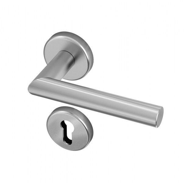 - Klamka obiektowa na szyldzie okrągłym o średnicy 50 mm wraz z dolnym szyldem z otworem na wkładkę bębenkową.