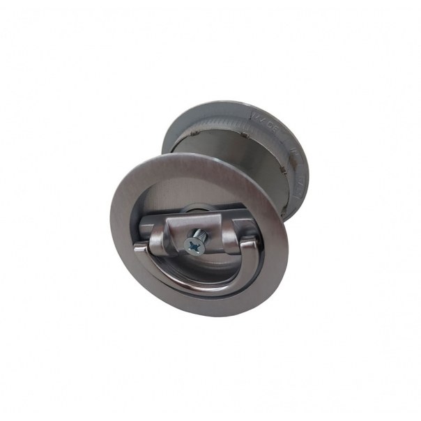 Okrągła klamka wpuszczana aktywno-pasywna. Umożliwia płaskie odłożenie na ścianę skrzydła drzwi, zamontowanego przy użyciu systemu COMPACK.