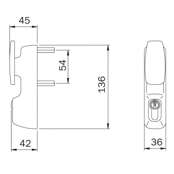 Uchwyt stały z wkładką bębenkową. Dedykowany do zastosowania jako okucie zewnętrzne do zamknięć przeciwpanicznych. Odpowiedni do drzwi przeciwpożarowych o maksymalnej grubości 105 mm. Dostępny w wykończeniu metalizowanym szarym.