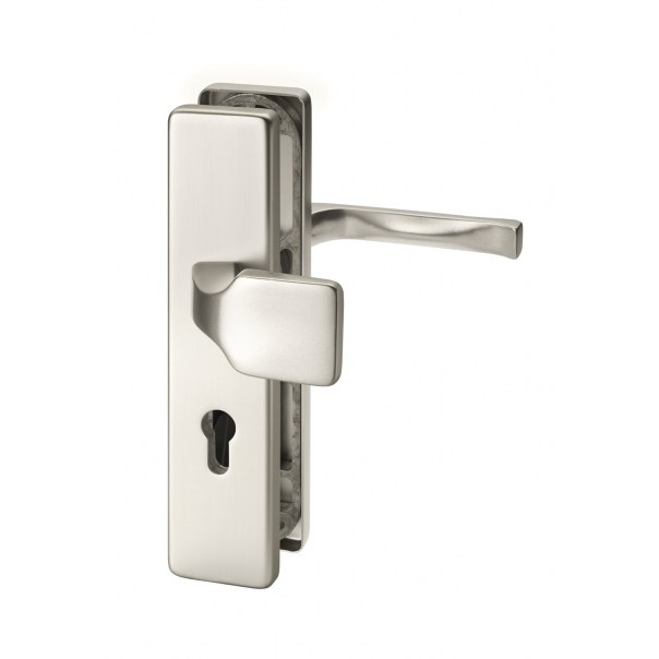 Posiada trzpień ⧄ 8 mm. Ze względu na zastosowany materiał - aluminium - może być również stosowana na zewnątrz pomieszczeń. Z kolei dzięki śrubom montażowym ukrytym od strony zewnętrznej, z powodzeniem może być montowana w drzwiach przeciwwłamaniowych.