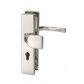 Klamko-gałka na długim szyldzie z otworem na wkładkę bębenkową. Dostępna w wykończeniu anodyzowanym srebrnym (F1).