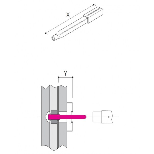 - Jednostronny trzpień rozporowy o długości 65 mm.