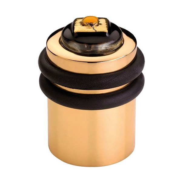 Elegancki odbój podłogowy o średnicy Ø30 mm. Jego wysokość wynosi 40 mm. Wyróżnia się elementami dekoracyjnego wykonanymi z barwionego szkła. Stanowi idealne uzupełnienie nowoczesnych i elegancko wyposażonych wnętrz. Został wykonany z mosiądzu i jest dostępny w wykończeniu pozłacanym.