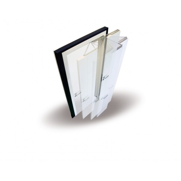 System drzwi łamanych, umożliwiający ich zamontowanie w miejscach, charakteryzujących się ograniczoną ilością dostępnej przestrzeni. Stanowi idealne rozwiązanie w drzwiach do garderoby lub do wydzielonych, mniejszych pomieszczeń mieszkalnych i gospodarczych. Poszczególne elementy systemu zostały wykonane ze stali nierdzewnej co sprawia, że jest on trwały i wytrzymały.