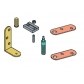 Zestaw zawiera: dolny uchwyt, pin mocujący, górny uchwyt, górną płytkę montażową oraz dolną płytkę montażową.