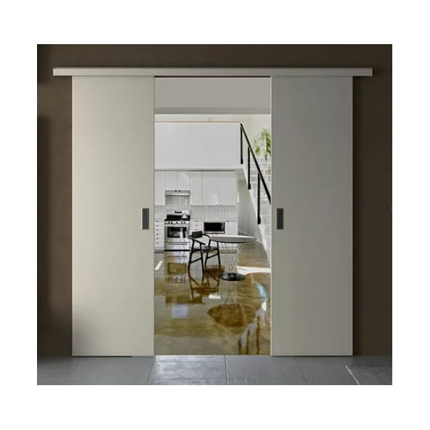 System przesuwny dedykowany do drzwi drewnianych dwuskrzydłowych o maksymalnej wadze skrzydła 80/120 kg. System działa symultanicznie co oznacza, że oba skrzydła drzwiowe są otwierane jednocześnie.