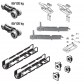 Zestaw zawiera: dwa wózki jezdne 80/120 kg, dwa uchwyty podtrzymujące, dwa uchwyty do zawieszenia, dolne prowadzenie z regulacją, dwa hamulce, dwie zaślepki osłony, dwie zaślepki, klucz imbusowy i klucz płaski.