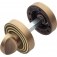 Okrągła blokada WC o średnicy Ø 54 mm. Montowana na śruby i wkręty. Wykonana z mosiądzu i dostępna w wykończeniu stare złoto (francuskie).