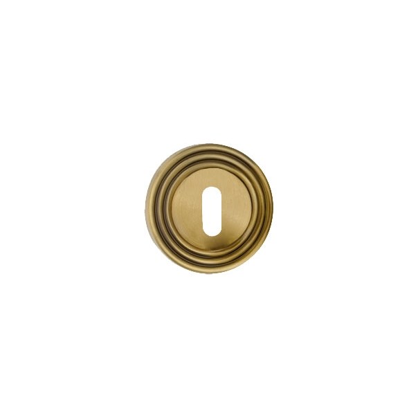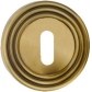 Dolny szyld okrągły o średnicy Ø 54 mm, wyposażony w otwór na klucz. Montowany na śruby i wkręty. Wykonany z mosiądzu i dostępny w wykończeniu brązowionym matowym (ciemnym) + przecieranym lakierowanym.